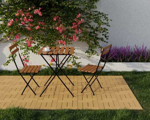 Wood Plastic Composite decking tiles combine wood fibers and recycled plastic, offering superior durability with low maintenance. They resist fading, moisture, and insects, making them perfect for long-lasting outdoor use.