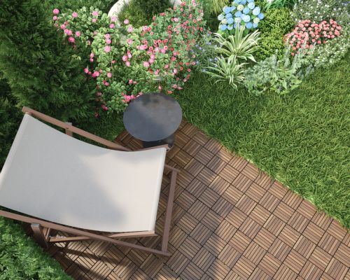 Acacia wood decking tiles stand out for their rich golden hues, natural hardness, and strong resistance to outdoor conditions.